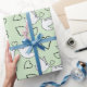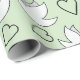 "Bröllopsduvor för par Ljusgrön Sömlös Inpackningspapper" visar bröllopsduvor med utsträckta vingar, som representerar kärlekens resa, vilket gör det till ett vackert val för bröllopsgåvor.