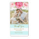 Bröllop tackar dig för att du anpassningsbar fotomallsetiketter i ljuspastellturkos teal himlar blue och white rand rand mönster med vintage rosa vattenfärgblommor och guld färg text. Perfekt för bröllopsfavörer eller bröllop vin flaska-märkning.
