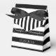 Vilken underbar, personlig Party-favoritruta för ett Bröllop eller annat speciellt tillfälle. Den här favoritrutan är dekorerad med mönster i svartvitt rand. På framsidan, Namn och händelsemedatum i vitt. Ett svart band slutför det festliga utseendet. En modern, elegant och en chic bröllopsfavoritruta. Alla Höger förbehållna © 2015 Alan & Marcia Socolik.