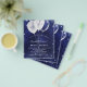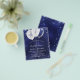 En modern, stilfull och glamourös inbjudan till en Bröllopsfest. En marinblå bakgrund, dekorerad med falska glittergnistor och vita ballonger. Den blå färgen är ojämn. Anpassa och lägg till ett namn och festdetaljer.