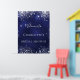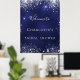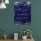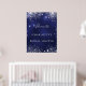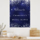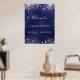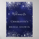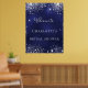 En välkomstskylt för en bröllopsfest. En marinblå bakgrund med eleganta falska silverglittergnistor. Den blå färgen är ojämn. Anpassa och lägg till ett namn. Vita bokstäver. Baksida: ingen design
