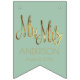 Bröllopsfest Bunting Blek Mint Grönt och Faux Gold Foil Mr och Add Family Namn par and Date Elegant Bunting Banner Party