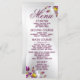 Bröllopsfest Blommigt Rosa Lila Silver Middag Menu. Unik, vacker utformning av snyggten. Lätt att vara personlig. Teckensnittet stil, storlekt och färg kan ändras. Matchande objekt är tillgängliga.