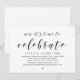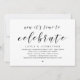 Modern svart skript-tema, bröllopsinbjudningskort (det är dags att fira). Det är perfekt för din bröllopsfest / efterbröllopsfirande. Lägg till dina detaljer i matchande svart teckensnitt / bokstäver.
