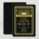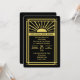 Denna art deco-inbjudan till efterfesten är i svart och guld. En solstråle är brännpunkten för inbjudan med art deco-utsmyckningar genomgående. Denna inbjudan har en fantastisk retro-känsla och är ett underbart sätt att inbjuda dina gäster till din efterfest med ett roaring 20-tals bröllopstema. Copyright henishouseofpaper