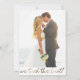Detta eleganta bröllopsutskick fungerar också som en inbjudan till bröllopsfesten. Dubbelsidig inbjudan till bröllopsfest med "vi knöt knuten" i falskt guldtryck och text som tillkännager det nygifta parets äktenskap och inbjuder gästerna till en avslappnad bröllopsfest. Anpassa med ditt foto på baksidan.