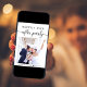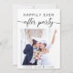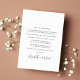 Modern elopement eller privat bröllopsinbjudan och mottagning. Framsidan visar ditt foto, "Bröllopsfest efter kalaset" i enkel typografi och ett trendigt manus med svängar och dina namn och bröllopsdatum. På baksidan kan du anpassa din underrättelse och inbjudan och lägga till dina namn i ett signaturliknande manus.