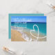 Idealisk inbjudan för alla som gift sig utomlands och vill fira med vänner och familj hemma med en solig strandvy, vackra vita pärlor i form av ett hjärta och söta röda kärlekshjärtan.