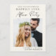 Elegant ljuskräm spara-datum-kort för ditt privata bröllop/efterkalas. Framsidan visar ditt bröllopsfoto och "Spara datum för vår lyckliga efterfest" i en blandning av enkel typografi och ett modernt skrivsätt; lägg till dina förnamn och datum för kalaset. På baksidan kan du anpassa ditt meddelande om datum i detalj och lägga till ditt efternamn i ett signaturliknande skrivsätt.