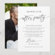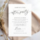 Modern svart-vit bröllopsmottagning firande foto inbjudan. Designen har typografi skript '' lyckligt efter fest '' i trendig bokstav och detaljer om firande på framsidan och ett vertikalt foto på baksidan.