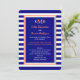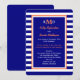 Denna randiga bröllopsfest efter inbjudan har ett marint tema med marinblå och vita ränder i bakgrunden. Dina inbjudningsdetaljer visas i marinblått som kantas med vitt och korall. Du kan placera ditt monogram högst upp och ange detaljerna om var du gifte dig, samt ange detaljerna för din efterfest. Copyright henishouseofpaper