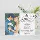 Meddela dina vänner och familj att du gift dig i en privat ceremoni och bjud sedan in dem till en efterfest / mottagning. Anpassa med din information. Funktioner med formuleringen "Till sist" i ett delikat skript med handritade gröna blad. Även ett bra alternativ efter att ha skjutit upp en fest på grund av COVID.