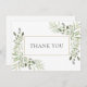 Elegant modern grönska blad bröllopsfest tackkort med känsliga akvarellblad som ramar in ditt tackmeddelande i stilfull typografi. Du kan anpassa genom att lägga till ditt eget tackmeddelande på baksidan eller om du föredrar att lägga till ditt eget handskrivna meddelande, helt enkelt ta bort texten. Ett perfekt sätt att tacka dina gäster! Designad av Thisisnotme