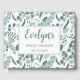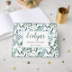 Denna bröllopsfest gästbok har en modern design med eucalyptusgrönska i mjuka färger som teal, mintgrön och vit. Du kan anpassa gästboken genom att ändra namnet, evenemanget (som bröllopsfest, bröllop, förlovningsfest, trädgårdsfest, etc.) och datumet.