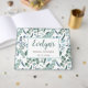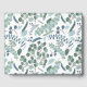 Denna bröllopsfest gästbok har en modern design med eukalyptusgrönska i mjuka färger som teal, mintgrön och vit. Du kan anpassa gästboken genom att ändra namnet, evenemanget (som bröllopsfest, bröllop, förlovningsfest, trädgårdsfest osv.) och datumet.