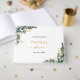 För en elegant och feminin bröllopsfest. En chic vit bakgrund. Dekorerad med akvarellmålad eukalyptus grönska och lavendelblommor. Anpassa och ett namn. Svarta och gyllene bokstäver. Rygg: lägg till egen text.
