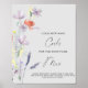 Den bohemiska stilen och det eleganta bröllopsfirandet är dekorerat med vackra handmålade akvarell- fältblommor, dekorerade i form av en vacker bukett, och elegant kalligrafisk handskrift, som är perfekt för vår-, sommar- eller höstbröllop. Matchande artiklar finns.