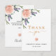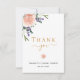 Ett modernt och elegant tackkort för bröllopsfest. En chic vit bakgrund. Dekorerad med roséguld och blush rosa rosor, blommor och lavendel. Svarta och gyllene bokstäver. På framsidan texten: Tack, namn och datum.
