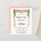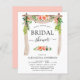 Bröllopsinbjudningar för bruden med budget Coral, Peach och Vita Blommor och Eukalyptus Grönska Båge - inkluderar vacker och elegant skript typografi med moderna botaniska blommor och grönska för den speciella Brudens firande.