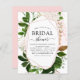 Bröllopsinbjudningar för vår- bröllopsfest med grönska, botanisk akvarell och roséguld - rosablommig geometrisk design på vit bakgrund - inkluderar vacker och elegant skript typografi med moderna botaniska blad och grönska för den speciella brudens firande.