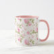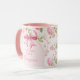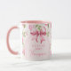 Denna mugg har en rosett och en bakgrund av kålsrosor med frasen "Framtida fru". Du kan anpassa den med ett namn.
