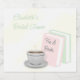 Bröllopsfest för tea and books. Med rosa och gröna böcker och en kopp te