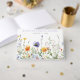 Denna design har en färgrik kant av akvarellvildblommor i nyanser av lila, guld, grönt och blått.
