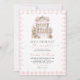 Hon är fresh off the Market! En söt blommig bröllopsinbjudan med rosa randigt bakgrund.