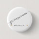 "Bröllopsfest Grovkvinnas Script Enkel Modern Guld Hjärtknapp." Enkel. Minimalistisk. Perfekt för det moderna bröllopet Bröllopsfest. "Grovkvinnas" i script kalligrafi, med hennes namn personifierat och markerat med små gnistrande guldhjärtan. Upphovsrätt.