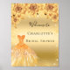 Bröllopsfest guld glitter klänning blommor välkomm poster