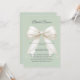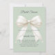 Fira bruden med denna eleganta bröllopsinbjudan i pilörtgrönt. Designen fokuserar på en stor elfenbensfärgad akvarellslinga dekorerad med pärlor över en dämpad pilörtgrön bakgrund. Denna inbjudan är ett idealiskt val för en sofistikerad trädgårdsinspirerad fest eller en klassisk coquette-firande. Anpassa och lägg till namn och festdetaljer.