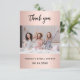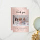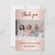 Ett modernt tack-kort för bröllopsfesten. Roséguld bakgrund. Personlig och lägga till foto och tacknota.