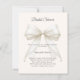 En elegant, mjuk elfenbensvit bakgrund, dekorerad med en stor rosett med pärlor. Personifiera och lägg till namn och festdetaljer.