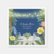 Bröllopsfest med blå blomsterträdgård och gnistran pappersservett