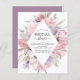 Bröllopsinbjudan med Boho-dammsrosa och lila blommor och grönska i vattenfärg för vår eller sommar med vacker och elegant typsnitt och moderna botaniska blommor och grönska för den speciella brudens firande.