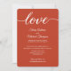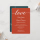 Trendig, elegant, varm jordton brölloppsfärgpalett i bränt orange, grön vigselceremoni bröllopsmottagning inbjudan. Denna design har ett modernt "Love" kalligrafiskrift. Anpassa denna vigselceremoni bröllopsmottagning inbjudan med brudens och brudgummens namn och all information om vigselceremonin och bröllopsfesten. Inkludera även en bröllopswebbplats för RSVP. Denna snygga och eleganta layoutdesign är enkel att anpassa. För ett höstbröllop.