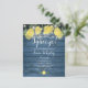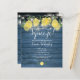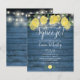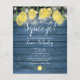 Med lemonsk grönska och fina strängljus på en blå rustik trädgård bakgrund, kan denna roliga bröllopsfest inbjudan anpassas med din speciella händelseinformation. Designad av Thisisnotme©