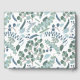 Den här gästboken för bröllopsfest har en modern design med eucalyptusgrönska i mjuka färger som teal, mintgrön och vit. Du kan anpassa gästboken genom att ändra namnet, evenemanget (som bröllopsfest, bröllop, förlovningsfest, trädgårdsfest, etc.) och datumet.