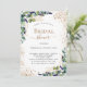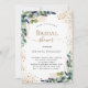 Bröllopsfest med eukalyptusgrönska och guldglitter inbjudningar