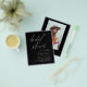 Elegant och modern bröllopsinbjudan med minimalistisk budget svart-vit skrifttyp med foto på baksidan Höst, Vinter, Vår eller Sommar - inkluderar vacker och elegant skrifttypografi för den speciella bruden före bröllopet.