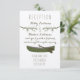 En rustic bröllopsinbjudan med en illustration av grenar av städsegrön. Grön kanot längst ner.