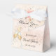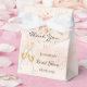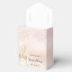 En roséguld, rosa falskt metalliskt utseende bakgrund. Dekorerad med rosa och roségulda blommor, pampasgräs och champagneglas med bubblor. Med texten: Bröllopsfest och Tack skriven med en modern handskriven stilsnrift. Personifiera och lägg till ett namn och ett datum.