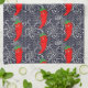 En röd och het peppar-tecknad figur. Originaldesign med vit spetsmönster i bakgrunden.