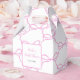 Fin presentbox till bröllopsfest med ram i rosa band. Perfekt för vår- eller sommarbröllop. Orden kan ändras för att passa dina egna detaljer eller krav.