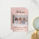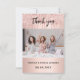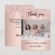 Ett modernt tackkort för bröllopsfest. En roséguld bakgrund dekorerad med falska glittrande droppar, målade dropp effekter. Anpassa och lägg till ditt foto och tackkort.