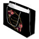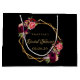 En trendig och stilren bohemisk boho-stil för en bröllopsfest. Dekorerad med akvarellmålade rosor i burgunderrött och rosa. Elegant svart bakgrund. En falsk geometrisk ram i guld. Mallar för brudens namn och datum. Med texten: Bröllopsfest skriven med en handskriven stilsnurrig text, falska bokstäver i guld.