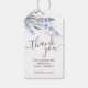 Rustik och modern presentetikett för bröllopsfest med vattenfärg lavendel blommor.
