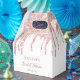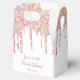 Elegant, klassisk, glamourös och kvinnlig för en bröllopsfest, festgåvor. En stilren vit bakgrundsfärg. På framsidan och baksidan: Personifiera och lägg till ett namn och ett datum. Namnet skrivs med en modern handskriven stilsnack. Dekorerad med rosa guld falskt glitterdropp, målad droppande look.