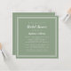 Enkel och rustik salvia grön och vit fyrkantig bröllopsdusch inbjudan design har en enkel modern minimalistisk design med en dubbel ram kant i vitt på en trendig salvia grön bakgrund. Anpassa bröllopsdusch designen med dina detaljer i trendig bokstavsstil och script i vitt. Baksidan matchar i enfärgat grönt. För bästa resultat, ersätt mallens detaljer med dina egna detaljer och lämna utrymme mellan stycken som i exemplet och använd gemener där det anges. E-posta invitationsuites@gmail.com med frågor eller anpassade förfrågningar.