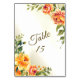 Bröllopsfest Orange Gult Red Blommigt Greenery Bordsnummer. Unik, vacker utformning av snyggten. Lätt att vara personlig. Teckensnittet stil, storlekt och färg kan ändras. Matchande objekt är tillgängliga.